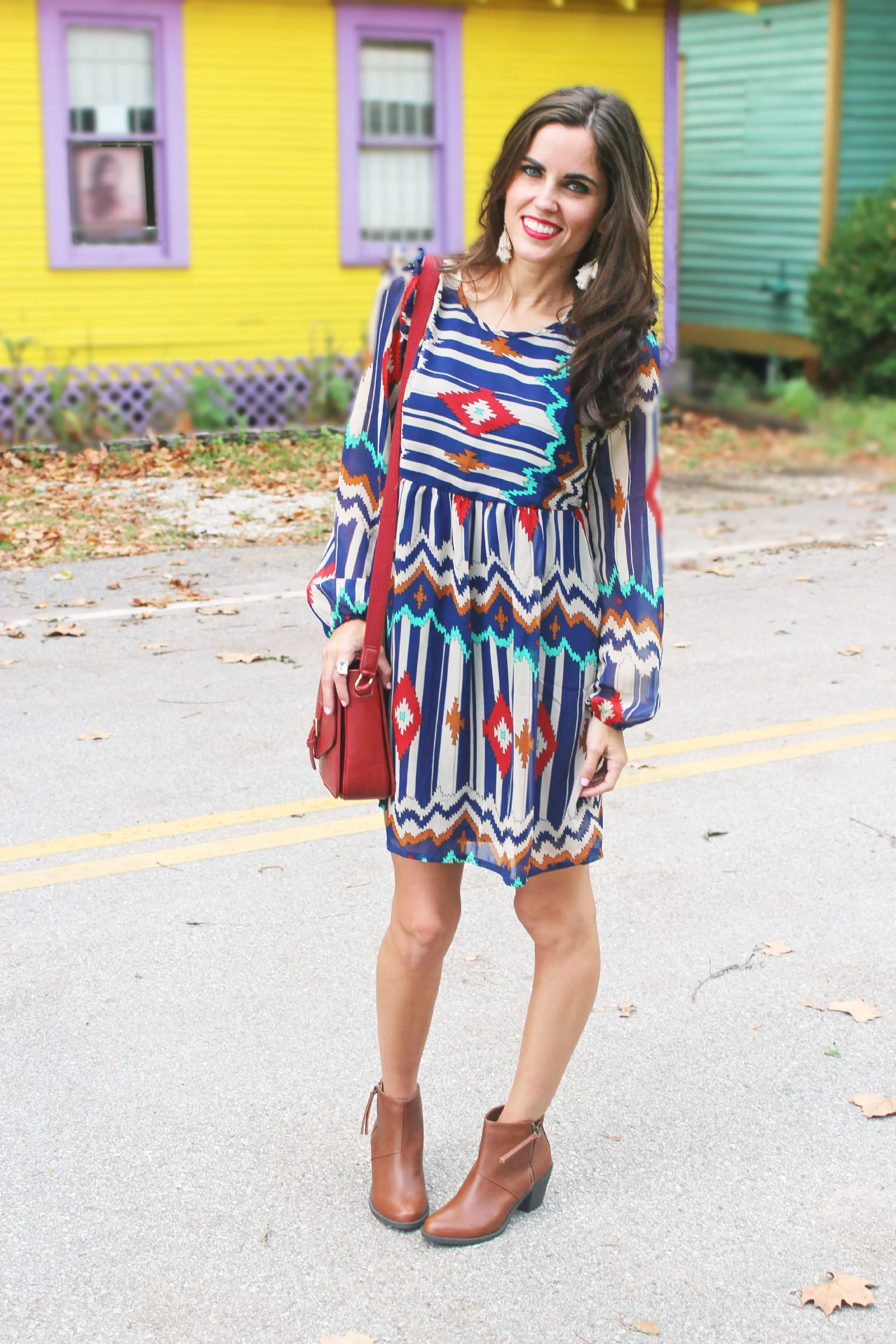 You guys, I love the Robyn Dress from Gray Monroe. It's super comfy, the material doesn't wrinkle like most, and the ruffle detail on the sleeve is so cute. Not to mention the pattern & colors are perfect for fall! For just $38 with free shipping, it's definitely worth the buy.